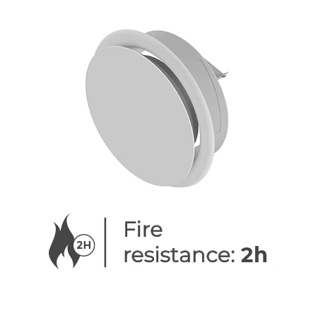 Fire resistance class EI120 (ve ho o→i)S / EI120 (ve i→o) / EI180 (ve o→i)S. The valves are certified for conformity with EN 15650, classified pursuant to EN 13501-3, and tested according to EN 1366-2.